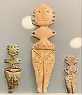 "The prevalence of a female character is clear, as it represents 34% of all the anthropomorphic representations. That might represent a deity, the term having a general significance, of worship, without being able to specify under the current stage of the researches which is the nature and status of this deity. The male representations are very few, about 1%, while about 10% are the asexual representations, therefore with no sign (breasts, sexual triangle) which might point to the sex of the statuette." — Gumelniţa Anthropomorphic and Zoomorphic Objects of Art by Radian Romus Andreescu.[8]