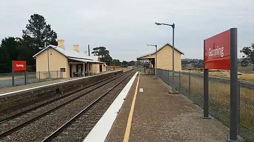 Gunning railway station is a heritage-listed railway station located on the Main Southern line serving the town of Gunning, New South Wales, Australia. The property was added to the New South Wales State Heritage Register on 2 April 1999, described as the Gunning Railway Station and yard group.[1]