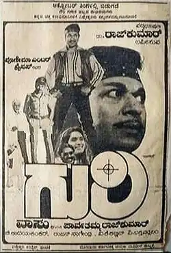 Guri () is a 1986 Indian ⓘKannada-language action film directed by P. Vasu and produced by Parvathamma Rajkumar under Poornima Enterprises. The film stars Dr. Rajkumar, Archana, Mukhyamantri Chandru and Jai Jagadish, while Pandari Bai makes a cameo appearance. The music was composed by Rajan–Nagendra, while cinematography and editing were handled by V. K. Kannan and P. Bhakthavathsalam.[1] P. Vasu remade the film in Tamil in 1991 as Adhikari, thus making it the last film of Dr. Rajkumar which was remade in other language.