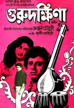 Guru Dakshina is a 1987 Indian Bengali language musical romantic drama film written and directed by Anjan Choudhury and produced by Bhabesh Kundu. The film stars Ranjit Mallick, Tapas Paul, Satabdi Roy, Kali Banerjee, and Shakuntala Barua in the lead roles.[5] The film is about a poor village boy named Jayanta Bose who becomes a popular singer but faces roadblocks and tragedies on the way.