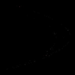This contraction, combined with a stretching and folding action, creates the characteristic fractal structure of the Hénon attractor. For the classical parameters, most initial conditions lead to trajectories that outline this boomerang-like shape. The attractor contains an infinite number of unstable periodic orbits, which are fundamental to its structure.[5]
