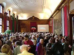 A further extension creating an east wing, with three new bays at the front, was erected to a design by Pierre Drobecq and officially opened by the mayor, Edmond Warluzel, in October 1934. New rooms on the first floor of the east wing included the Salle du Conseil (council chamber) and the Salle des Fêtes (ballroom), which was decorated with a painting by Claudius Jacquand depicting the mayor, Antoine Eurvin, refusing to surrender to the English troops of Henry VIII during the siege of Boulogne in 1544.[8][9]