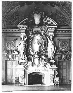 The plan accommodates large meeting rooms and halls on the ground floor, for French civil marriage ceremonies and meetings of the city council, and are as abundantly decorated as the exterior. The Salle des Fetes features further sculptural work by Injalbert, a figure of the Republic, and a companion figure La Touraine by Loiseau-Bailly.[10] Two caryatids on the mantel are credited to Henri Varenne.[11]
