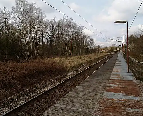 Høvelte railway halt (Danish: Høvelte Trinbræt) is a railway halt on the Hillerød radial of the S-train network in Greater Copenhagen, Denmark. It is located between Birkerød station and Allerød station and primarily serves Høvelte Barracks. There is only one station platform by the northbound track. Only the five first trains in the morning and the five last trains in the night stop and only at request. On Sundays and in holidays it is the last eleven trains.