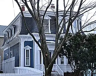 The H. Warren House is a historic house in Somerville, Massachusetts. The two story wood-frame house was built c. 1870, probably by J. K. Moore, a local cabinet maker. It is one of the finest Second Empire structures in the Winter Hill area of the city. The mansard roof is pierced by numerous gabled and pedimented dormers, the cornice is lined with dentil molding and studded with brackets, and the house corners have quoins designed to resemble stonework.[2]