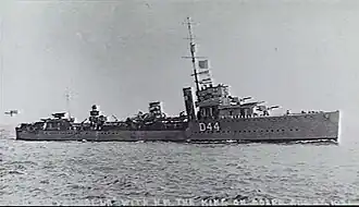 She was propelled by three Yarrow-type water tube boilers powering Parsons geared steam turbines developing 27,000 shaft horsepower (20,000 kW) and driving two screws for a maximum designed speed of 34 knots. She was oil-fired and had a bunkerage of 320 to 370 tons. This gave a range of 3,500 nautical miles at 15 knots.[1]