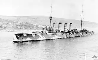 HMS Weymouth was a Town-class light cruiser built for the Royal Navy during the 1910s. She was the name ship of the Weymouth sub-class of the Town class. The ship survived the First World War and was sold for scrap in 1928.