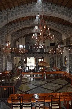 There are three main buildings, a main house, a chapel and dormitories. The main house holds a large dining facility, class and meeting rooms, library, a game room/bar and more. The chapel has the layout of a traditional hacienda chapel but is much larger, with space to hold assemblies of up to 300 people. The dormitories are off to the side of these buildings and house up to 500 students.[1][3]