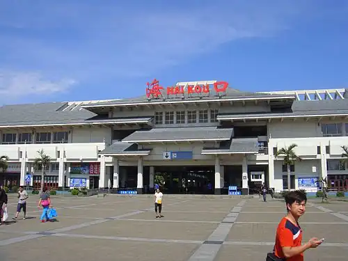 Haikou railway station (Chinese: 海口站) is the northern terminal of the Hainan eastern ring high-speed railway, the Hainan western ring high-speed railway, and the Hainan western ring railway. It is located a few hundred metres southeast of South Port, the Hainan terminal of the Guangdong–Hainan railway, in the far western suburbs of Haikou City.