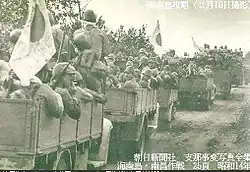 ![]() Imperial Japanese Army soldiers in trucks during the invasion of Hainan (Asahi Shinbun news photo) | |||||||||