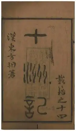 Hainei shizhou ji (traditional Chinese: 海內十洲記; simplified Chinese: 海内十洲记), also known by its shortened name Shizhou ji (traditional Chinese: 十洲記; simplified Chinese: 十洲记), also translated into English as Records of the Ten Continents,[1] Record of Ten Continents within the Seas,[2] and Notes on the Ten Regions on This Side of the Sea,[3] is an ancient Chinese collection of fantastic stories from the Han dynasty. The work is traditionally attributed to the Western Han dynasty scholar Dongfang Shuo (160-93 BCE). Alongside the Shenyijing and Bowuzhi, it is a prominent example of early Chinese fantasy.