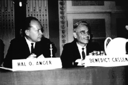 ![]() Hal Anger and Benedict Cassen at the International Conference on Peaceful Uses of Atomic Energy in Geneva, Switzerland, 1955 | |