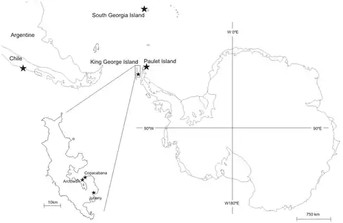 H. antarcticus is one of only two species of Haliclystus which inhabit the Southern hemisphere. It was first identified living in the waters of South Georgia Island, Antarctica. Its presence has since been reported in several locations in Antarctica with probable sightings in Chile and Argentina.[2]