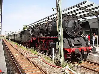 The railway stations of "Halle (Westf.)", "Künsebeck", "Halle Gerry-Weber-Stadion" and "Hesseln" are located alongside the railway tracks of the Haller Willem (KBS 402). The identically named Regionalbahn commutes hourly between Bielefeld, Halle and Osnabrück (during weekdays partly half-hourly between Bielefeld and Halle). The service is run by the NordWestBahn which uses Talent trains for speeds up to 120 km/h. The line was opened in 1886.