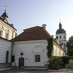 According to researcher Zoya Khyzhnyak, the school financed by Halshka Hulevychivna could have been located directly in the house that belonged to her. Researchers Yurii Losytskyy and Larysa Tolochko localize Halshka Hulevychivna's "Kamyanytsia" (stone house) on the site of the Annunciation Church and the kitchen of the Brotherhood Monastery, which, with subsequent restructuring, have survived to this day in Podil on the territory of the National University "Kyiv-Mohyla Academy" at 2, Hryhoriy Skovoroda Street.[10] According to researchers, the house is a typical example of Ukrainian architecture of the 16th century — a house "in two halves". The building is built of brick, plastered, with a vaulted basement, rectangular in shape. However, the archaeological study of the "kitchen" did not reveal building materials older than late 17th - early 17th century, and its foundation and walls were made of the same red brick.