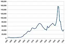 Traffic grew to a peak in World War II, as shown in the graph and table below.