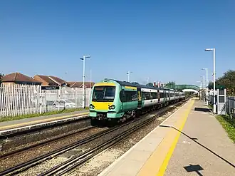 The station is located on a spur line originally termed the Eastbourne Branch.[2] There was a rarely used triangular junction between Polegate and the now-closed Stone Cross which allowed trains to bypass the Branch; the track has now been lifted. Services along the coast have almost invariably served Eastbourne, where they either terminate or reverse to continue along the East Coastway. This in turn means that many trains pass through Hampden Park station twice on the same journey - once on the way into Eastbourne, and once on the way out - although most do not stop on both occasions, passing through without stopping in one or other direction.
