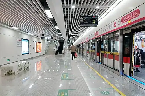 Hangzhou Grand Convention and Exhibition Center (Chinese: 杭州大会展中心) is a metro station on Line 1 of the Hangzhou Metro in China.[1] It was opened on 30 December 2020, together with the Phase 3 of Line 1.[2] It is located in the Xiaoshan District of Hangzhou.