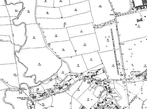 Charles Gostlin built a house at Hanwell Park, shown on John Rocque's map of 1746 as a square block. Henry Berners rebuilt the house, probably in the 1770s. A set of contract drawings exists by the architect Robert Mylne for a three-bay villa for 'Mr Berners, Hanwell'. These are signed by Henry Berners and the builder, Thomas Hardwick.[11] The drawings formed part of a lot sold at Christies in 2013.[12] The house was extensively remodelled after 1806 producing a much larger neoclassical house.[13] John Henry Brady, in his 1838 guide A new pocket guide to London and its environs, described the estate as an "attractive seat"[14] whilst others noted that though not large it was situated in extensive grounds.[15] Sir Archibald Macdonald, once Chief Baron of the Exchequer had owned the house,[15] but it was demolished around 1928[13] part of a wave of demolition of English country houses.