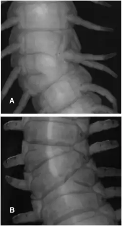 - ^ a b "MORPHOLOGICAL ANOMALIES IN HAPLOPHILUS SUBTERRANEUS (SHAW, 1794) (CHILOPODA: GEOPHILOMORPHA)" (PDF). Bulletin of the British Myriapod & Isopod Group. 26: 54–55. 2012. Archived from the original (PDF) on 13 Jan 2023.