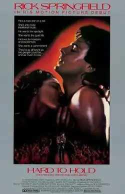Hard to Hold is a 1984 musical drama film directed by Larry Peerce. It was meant as a starring vehicle for Rick Springfield, who had a solid television acting resume and a blossoming rock-pop career, but had yet to break out in feature films. It stars Springfield, Janet Eilber, and Patti Hansen. The film features many Springfield songs which are included on the soundtrack.