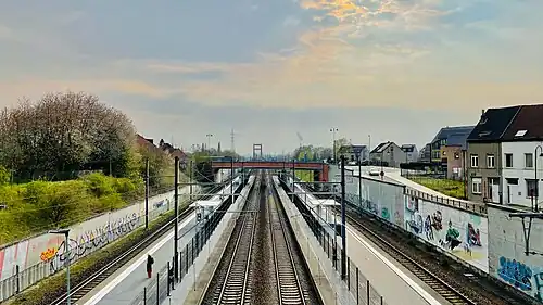 Haren-South railway station (French: Gare de Haren-Sud, Dutch: Station Haren-Zuid)[a] is a railway station on line 36 of the Belgian railway network. It is situated in Haren, part of the City of Brussels in the Brussels-Capital Region, Belgium. The train services are operated by the National Railway Company of Belgium (NMBS/SNCB).[1]