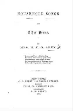 This article incorporates text from this source, which is in the public domain: Arey, H. E. G. (1855). Household Songs and other poems (Public domain ed.). J. C. Derby.