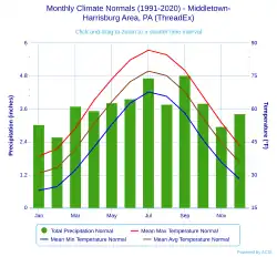58. ^ "Harrisburg, Pennsylvania, USA - Monthly weather forecast and Climate data". Weather Atlas. Retrieved July 4, 2019.