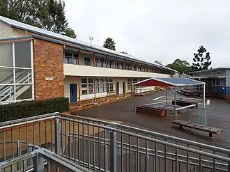 - ^ DPW Plan Barcode 11913231, "Harristown State High School new classroom wing", November 1958, amended February 1960. In the latter plan the eastern part of block noted as an "addition".