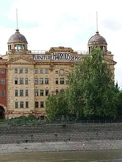 - ^ a b Historic England (10 May 1990). "Harrods Depository Riverside Warehouse to East (1254280)". National Heritage List for England. Retrieved 1 August 2020.