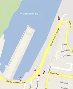 Harry's Cafe de Wheels is an iconic pie cart located on Cowper Wharf Road in Woolloomooloo, Sydney, Australia, near the Finger Wharf and Fleet Base East.