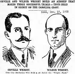 Drawings of the Wright Brothers one day after their famous December 17, 1903 flight