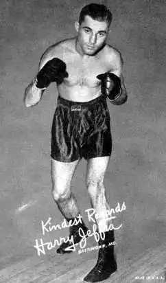 Harry Jeffra (born Ignacius Pasquale Guiffi on November 30, 1914 – September 1988) was an American boxer. Born in Baltimore, Maryland, he became an Undisputed World Bantamweight and NYSAC World Featherweight boxing champion. Jeffra's career spanned from 1933 to 1950, and his final record showed 93 wins with (27 by KOs), 20 losses, and 7 draws.[1][2] Jeffra was inducted into the World Boxing Hall of Fame in 1998.[2][3] His manager was Max Waxman and his trainer was Heinie Blaustein.