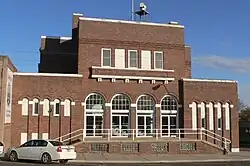 Steele drew up initial plans in 1921, then made revisions at the request of the city council. The council accepted the revised plans in January 1922, including space for the auditorium, city offices, fire house, and the National Guard armory that doubled as a gymnasium.[8][19]