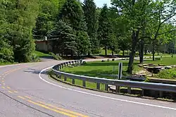 From 1952 to 1956, Pennsylvania State Senator T. Newell Wood hosted the Brynfan Tyddyn Road Race around his estate in Harveys Lake.[6] Brynfan Tyddyn is Welsh for "large farm on a hilltop" and the race consisted of 10 laps around a 3.5 mile course around the estate.[7] The race was discontinued in 1957 after a fatal accident and officials determined the course was too dangerous and difficult for participants and spectators to reach.[8]