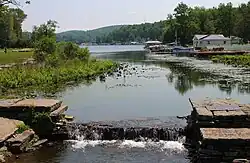 Harveys Lake has been popular for recreational purposes since the late 1800s.[3] Places such as Warden Place and Sandy Beach were popular recreational areas near the lake in the early 1900s.[8] Around this time period, there were four steamboats on Harveys Lake. They were used for carrying passengers and freight.[5] Recreational steamboat rides on the lake were popular between 1900 and 1920.[8] A 60-foot (18-meter) high Shoot the Chute was built in the area by Charles Shelley in 1910. It was one of the largest attractions in the lake's vicinity.[13] A casino near the lake was opened by Frank Devlin in May 1924, but was demolished in 1980. Devlin also opened the largest bowling alley in Northeastern Pennsylvania near the lake.[13] Throughout the 20th century, prior to and after World War II, the lake attracted thousands of visitors yearly.[8]