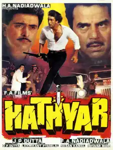 Hathyar (transl. Weapon) is a 1989 Indian Hindi-language action crime film written and directed by J. P. Dutta.[1][2] It features an ensemble cast of Dharmendra, Sanjay Dutt, Rishi Kapoor, Amrita Singh, Sangeeta Bijani, Asha Parekh, Paresh Rawal and Kulbhushan Kharbanda. The film focuses on how poverty forces a youngster (Dutt) to turn to crime by joining forces with the biggest don in town (Dharmendra), much to the chargin of his mother (Parekh), his lover (Singh) and his friend and the don's brother (Kapoor).