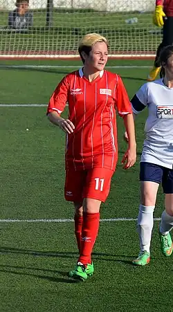 On 20 November 2006 she scored the only goal for Turkey in the UEFA Euro 2009 qualifying – Group A1 match against Croatia.[4][5] In the UEFA Support International Tournament group qualifying matches in November 2007, she netted a goal against the Bulgarian,[6] and two goals against the Azeri women's team.[7]