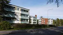 Buildings in Haukilahti are a mixture of apartment blocks and lower houses: detached and row houses. The apartment blocks are by roads Mellstenin rantatie and Haukilahdenkatu, on hills Pitkänkallionmäki and Hauenkallionmäki and near border to Westend.[6] In 2012, there were 2854 homes in Haukilahti, 54 of which were built before 1960, majority or 1386 during 1960–1969, 673 in 1970-1979 and roughly 680 after 1979.[7]
