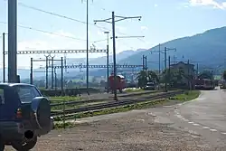 The municipality has four railway stations: Glovelier, Bassecourt, Courfaivre, and Combe-Tabeillon. The first three are located on the Delémont–Delle line and have regular service to Biel/Bienne, Olten, and Meroux (in France). In addition, Glovelier and Combe-Tabeillon are on the narrow-gauge La Chaux-de-Fonds–Glovelier line that links Glovelier with La Chaux-de-Fonds.