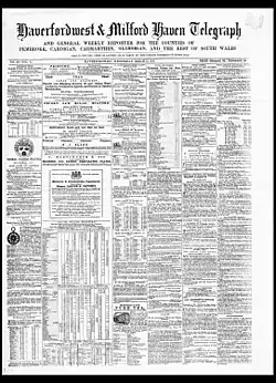Welsh Newspapers Online has digitised 713 issues of the Haverfordwest & Milford Haven Telegraph (1857-1919) from the newspaper holdings of the National Library of Wales.[1]