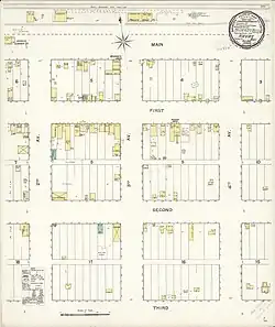 Havre was incorporated in north-central Montana on September 5, 1893.[7] In August 1893, twenty-six people voted to incorporate Havre as a city on September 5 of that year. The townsite was platted south of the railroad tracks on parts of Descelles’ and Simon Pepin’s ranches. Like many railroad towns, Havre’s streets were set in a grid formation, with the east–west orientation of the railroad serving as the northern boundary of the town running parallel to the south by Main Street, which fronted the railroad tracks, followed by First through Third Streets. The avenues ran perpendicular to the tracks with Third Avenue running south from the Great Northern depot. The depot served as the gateway to the commercial district of Havre. First Street between Second Avenue and Fourth Avenue served as the main commercial street, and Third Avenue became the main avenue. The buildings in Havre during the 1890s were typical first-generation structures and mainly consisted of tar papered wood-framed shacks. Built close together, these buildings were false-fronted and one story high, with a few scattered one-and-a-half and two-story buildings, like the Windsor Hotel on the south side of First Street between Third and Fourth Avenues.