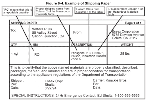 - ^ "49 CFR 172, Subpart C - Shipping Papers". Cornell University Law School. Retrieved 22 April 2013.