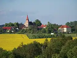 The main landmark is the Church of Saints Simon and Jude, located in Arnoštovice. It was built in the Gothic style in the third quarter of the 13th century. In 1732, the tower and sacristy were added to the church. In 1892, the church was modified into its present form.[8]