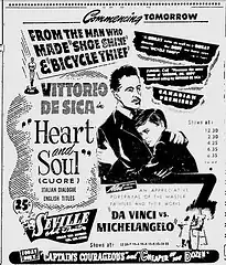 Heart and Soul (Italian: Cuore, also known as Heart) is a 1948 Italian drama film directed by Vittorio De Sica and Duilio Coletti, based on Edmondo de Amicis' novel Heart. De Sica won the Silver Ribbon for Best Actor by the Italian National Syndicate of Film Journalists.[1]
