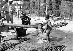 On January 24, 1968, Komer warned that "something is in the wind."[31] Seven days later the Tet Offensive was launched by the Viet Cong and the North Vietnamese army. Tet weakened the Saigon government's presence in the countryside which had been aided by CORDS. The Regional and Popular Forces abandoned the countryside in some areas to defend cities and towns, suffering more than 6,500 casualties, including desertions. Tet was a psychological and strategic defeat for South Vietnam and its American ally, but by resulting in heavy Viet Cong casualties facilitated an early return to the countryside by South Vietnamese authorities and CORDS.[32] Project Recovery distributed food and construction material to rural dwellers and involved CORDS in reconstruction efforts in the cities and towns. By May 1968, the rural population living in "relatively secure" hamlets had returned to pre-Tet levels of 67 percent.[33]