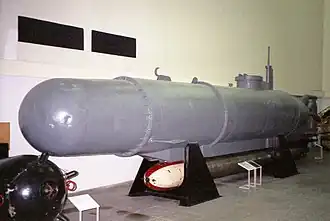 The submarine could also carry a diver in the nose rather than a magnetic mine.[3]
