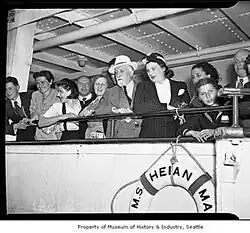 On 30 March 1937 she brought Prince and Princess Chichibu to Vancouver on their Royal Visit on their way to the coronation of King George VI.[4][5]