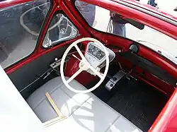 The Kabine had a steel unit body.[1] Access to the interior was by an opening front. In order not to infringe Iso Rivolta's patent used on the Isetta, the steering wheel did not hinge outwards with the door to ease passenger access. However, it did feature a reverse gear, unlike some other bubble cars. The fabric sun roof served as an emergency escape hatch should the sole door in front become jammed in a collision.