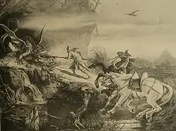 The nickname Schrutan (also Strutan, Struthan, Struth, etc.) is derived from German legend, where it is given to a giant, in particular one of the guardians of the Rosengarten in Heldenbuch literature, but it also occurs as the name of a knight at Etzel's court in the Nibelungenlied (v. 1880). Why the historical knight was given this nickname is not known, but it was not uncommon at the time for members of the knightly classes of the Holy Roman Empire to adopt pseudonyms taken from heroic fiction. Heinrich's sons would have been Rudolf and Walther von Winkelried, both d. c. 1325. Hermann von Liebenau further assumes that one Heinrich genannt Schrutan who was buried with his wife Mechthild in Colmar, Alsace must be identical with the knight,[3] who therefore would have left Switzerland at some point after 1303, but Oechsli (1898) does not accept the identity and ascribes the equality in name to coincidence.